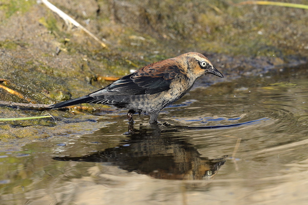 Rusty Blackbird re-enacting the story of Narcissus at Gazos Creek Beach Access, October 2020 (Aaron Maizlish)