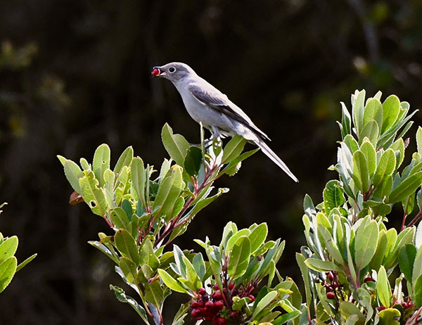 Townsend's Solitaire enjoying Toyon berries along Buckeye Canyon at San Bruno Mountain, March 2019 (Adam Dudley)