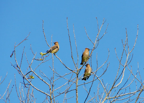 Cedar Waxwings in migration, Pescadero State Marsh, Water Lane riparian, May 2009 (Jennifer Rycenga)
