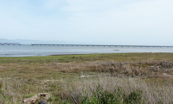 Ravenswood OSP, south side of Dumbarton Bridge, looking southeast to the old railroad bridge, March 2009 (Jennifer Rycenga)